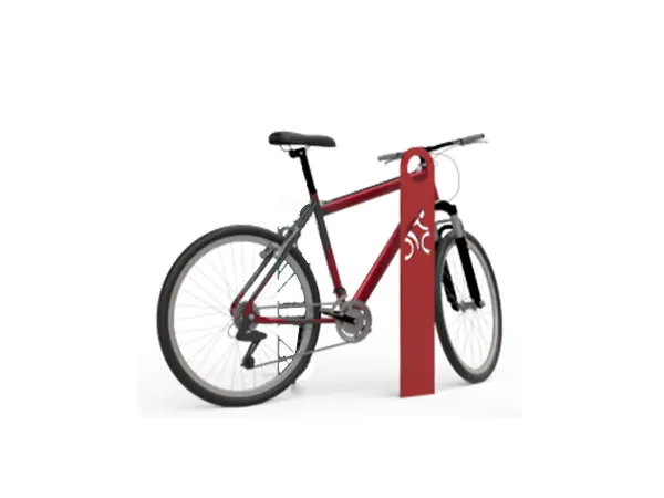 Bicicletário confeccionado em aço carbono com revestimento de galvanização e acabamento em pintura eletrostática.