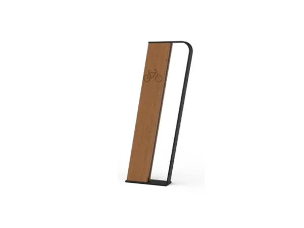 Bicicletário confeccionado em Madeira Jatobá/Madeira de Tamarindo tratada com decking oil e aço carbono com revestimento de galvanização e acabamento em pintura eletrostática, medindo 28x10x88 cm.