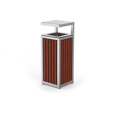 Lixeira com tampa em aço carbono com revestimento de galvanização e pintura eletrostática.Madeira de jatobá/madeira de tamarindo tratada com decking oil.