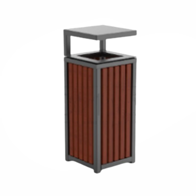 Lixeira com tampa em aço carbono com revestimento de galvanização e pintura eletrostática.Madeira de jatobá/madeira de tamarindo tratada com decking oil.